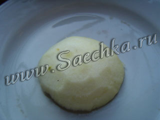 - Для лебедя требуется нарезать яблоко с трех сторон. Из нижней части яблока делаем заготовку для изготовления шеи.