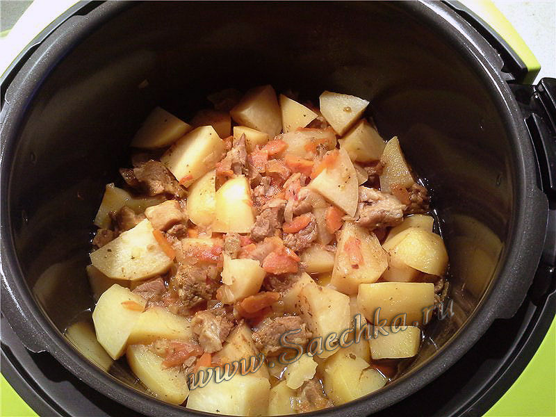 Тушеная картошка приготовлена с мясом в скороварке. Даже не верится, что мясо такое мягкое получилось, а картошка похожа, как бабушка в печке делала. Вроде ничего особенного: картофель, мясо, морковь, специи и лук, а вкус богаче, чем если в кастрюле потушить.