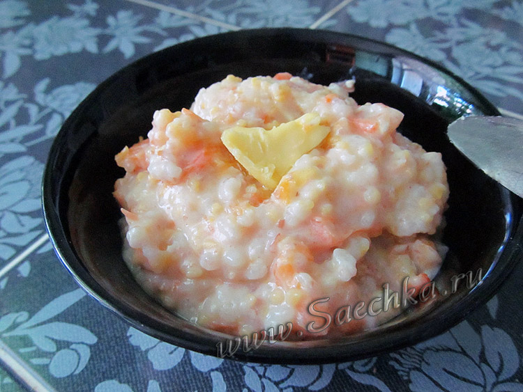 Трёхкомпонентная каша приготовлена в мультиварке с морковью и курагой.