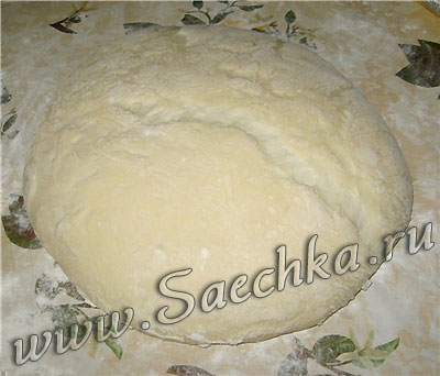 - Обильно посыпать стол мукой, выложить тесто и присыпать мукой сверху так же обильно. Сложить тесто в конверт несколько раз: сперва втрое, затем, перевернув на 90 градусов, ещё втрое. Тесто очень мягкое, почти жидкое и нужно немного подсыпать муки, работать с ним одно удовольствие.