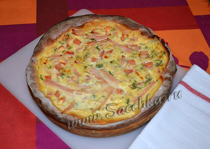Внезапно закончились дрожжи, хлеб не испечь, а "у него нога, ему домой", в морозилке после огромной партии пирожков остались 400 г теста, сочинился киш Лорен (Lorraine) - открытый пирог с заливкой из сливок и яиц.