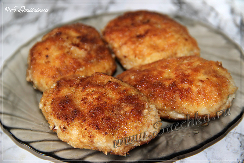 - Сформовала котлетки, окунула во взбитое яйцо и обваляла в панировочных сухарях.