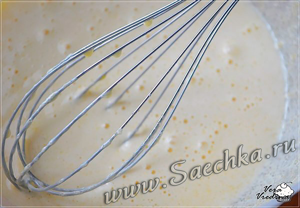 - Затем к эмульсии добавить охлаждённую сметану и размешать до однородности.