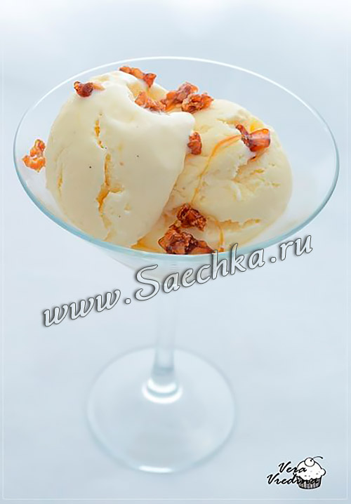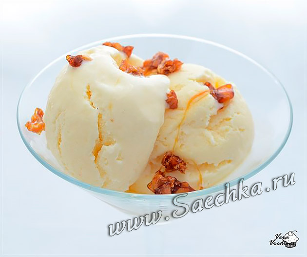 - При подаче можно добавить в порцию мороженого немного домашнего пралине.