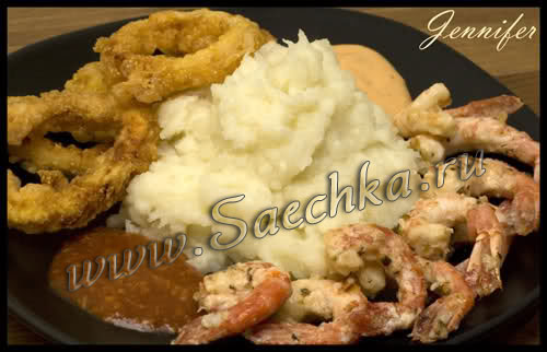 Креветки, кальмары и картофель с чесноком и сыром пармезан