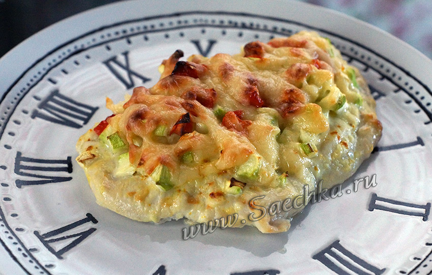 Диетическая куриная грудка приготовлена с овощами под сырной корочкой - это очень-очень вкусно и сытно! Овощи можно брать любые, я же сегодня делала так: