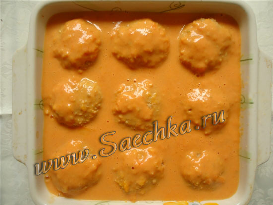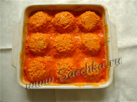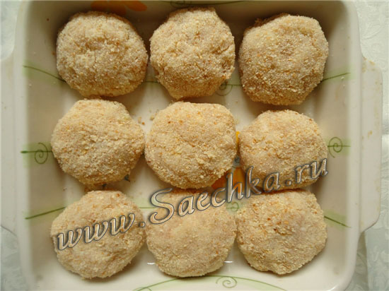 - Обвалять в сухарях и сложить в смазанную маслом форму для запекания.