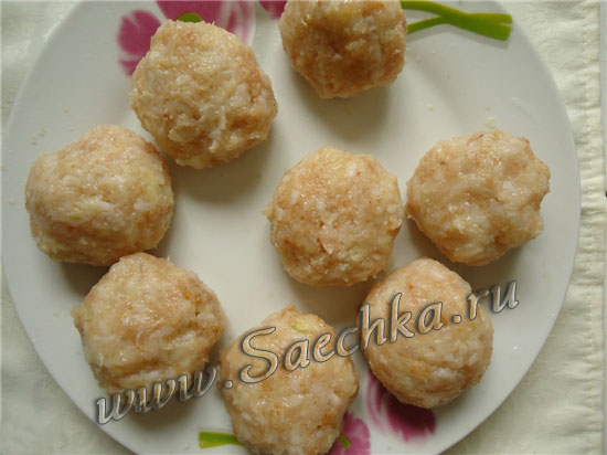 - Сформировать из получившегося фарша шарики: делать как снежки - сжимая ладони, чтобы появился сок, тогда не будут разваливаться.