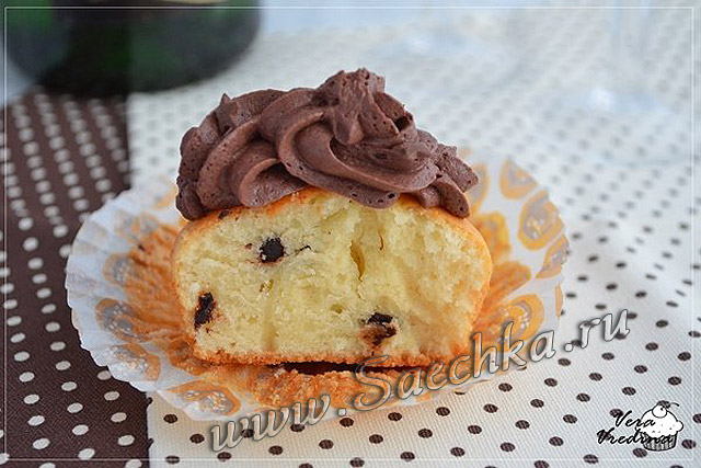 Вкусные и несложные в приготовлении маффины с шоколадными каплями сверху покрыты ганашем.