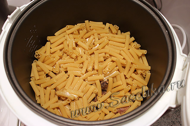 - По прошествии этого времени добавить макароны (только из твердых сортов пшеницы), соль по вкусу. Залить водой: уровень воды должен быть чуть выше макарон.