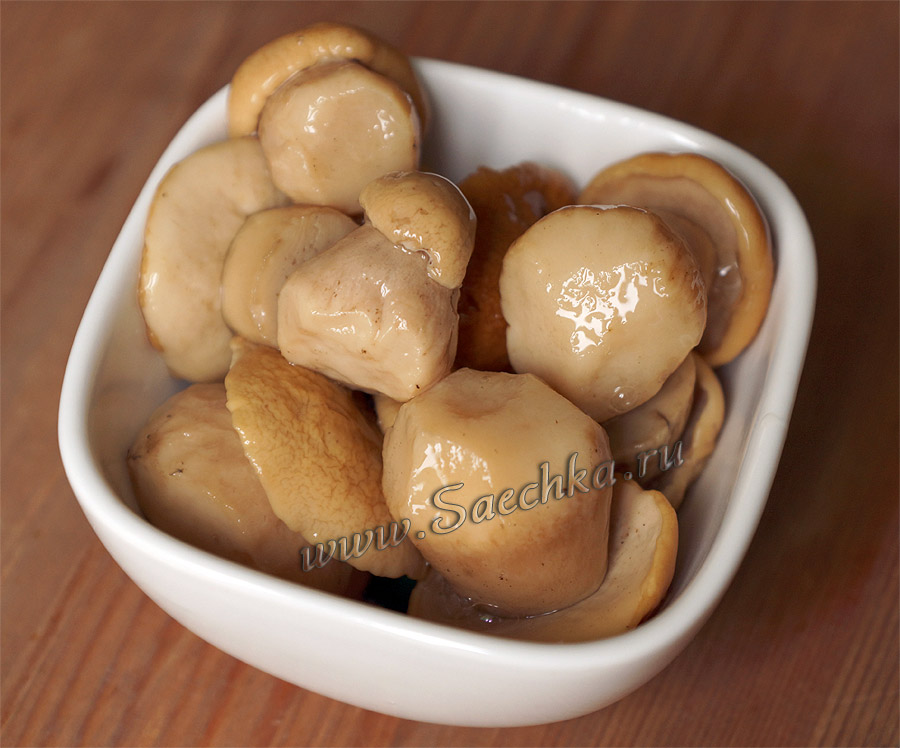 Маринованные с уксусом грибы приготовлены на зиму без стерилизации.