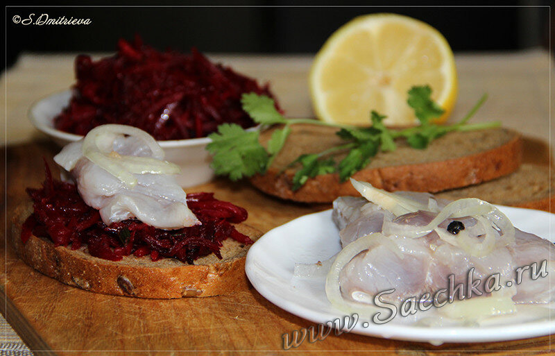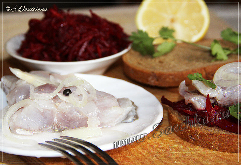 Маринованный толстолобик подан на бутерброде со свекольной икрой - наивкуснейшая закуска под запотевшую стопочку на природе! Пробуйте!