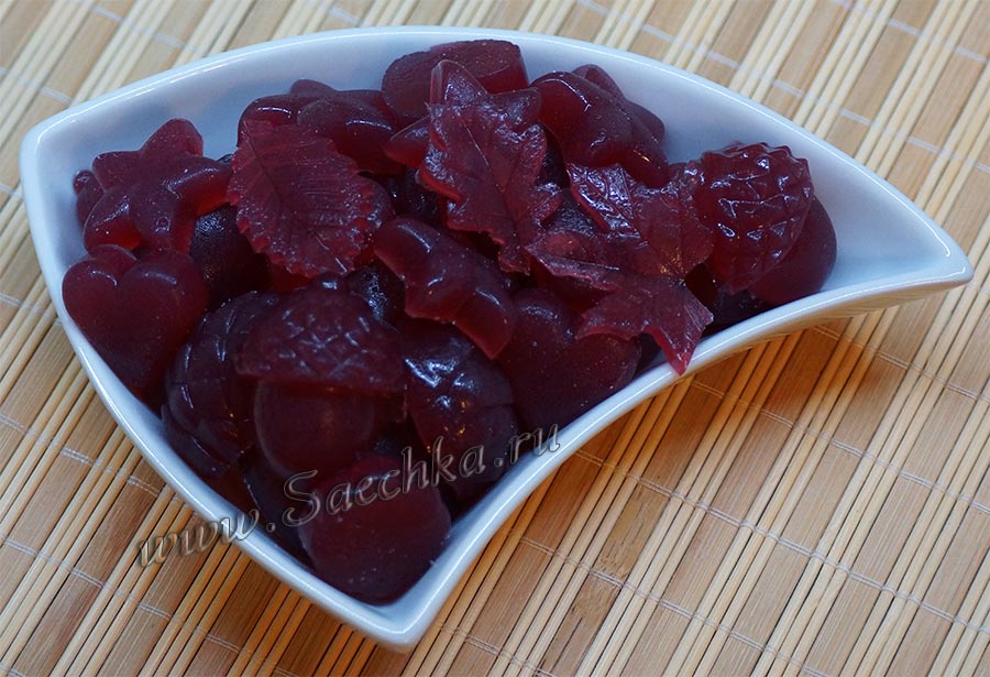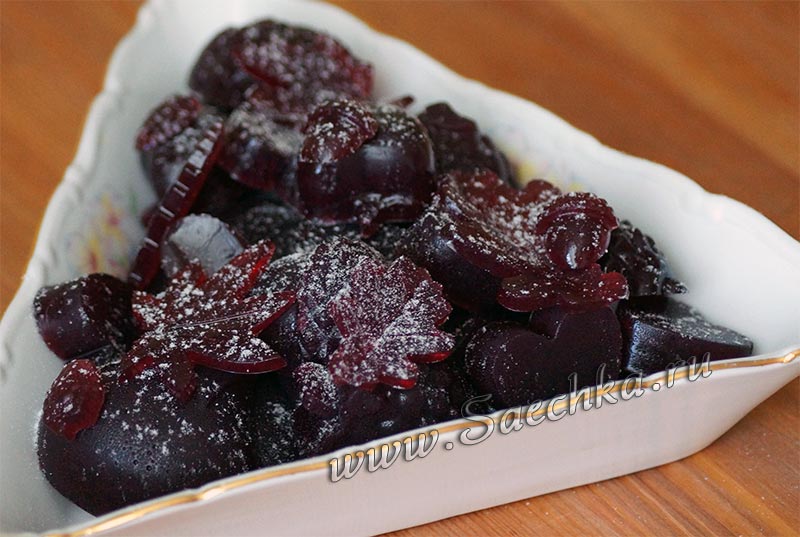 - Сверху готовый мармелад присыпать сахарной пудрой. Этот из черничного варенья:
