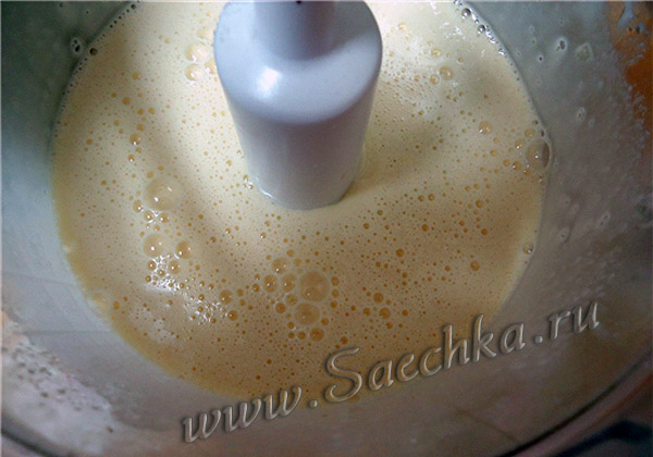 - Сахар и яйца хорошо взбить до пены (я взбивала в комбайне на максимальной скорости).