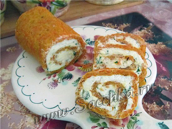 В морозилке скопилось тертая морковка: все откладывала, откладывала по чуть-чуть и про запас... Поэтому решила сделать рулет. Рецепт сборный – что-то из интернета, что-то из моей любимой кулинарной тетрадки.