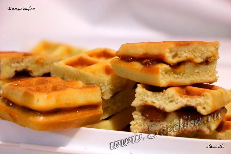 Мягкие воздушные венские вафли приготовлены в электровафельнице.