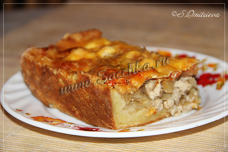 Открытый пирог приготовлен из картофельного теста с мясным фаршем - получается очень вкусным.