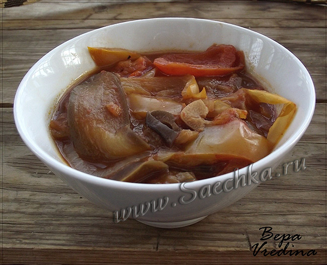 Томатное овощное рагу с баклажанами и лечо приготовлено в мультиварке. Вкусно и просто!