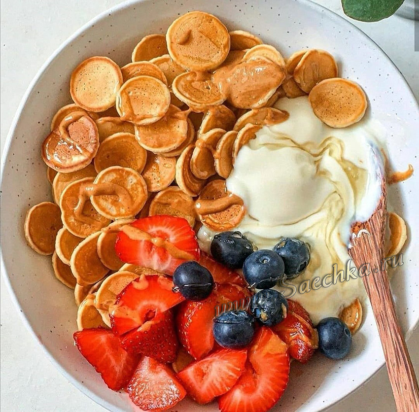 Небольшие панкейки приготовлены на кефире: быстрый вкусный завтрак.
