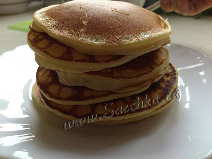 - На другой стороне жарим еще быстрее - секунд 20, наверное. Всё, панкейк или блинчик по-русски готов.