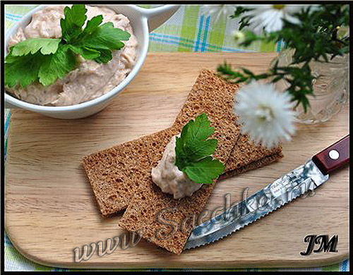Домашний паштет приготовлен из консервированного лосося. Такой паштет вкусно положить, например, на кусочек тостерного хлеба к завтраку.