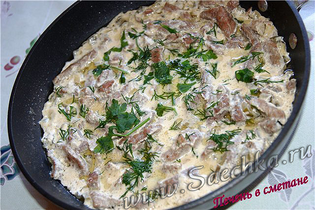- Тушить печень в сметане на слабом огне 20-30 минут.