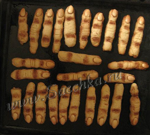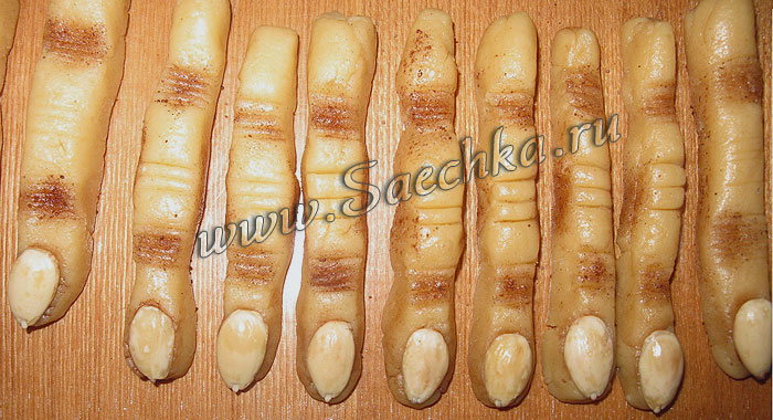 Печенье "Пальцы ведьмы" приготовлено на Хеллоуин.