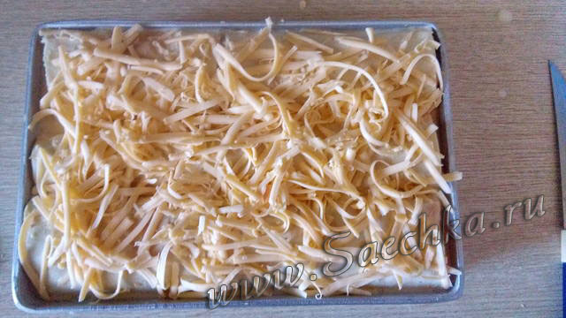 - Сверху посыпать тёртым сыром.