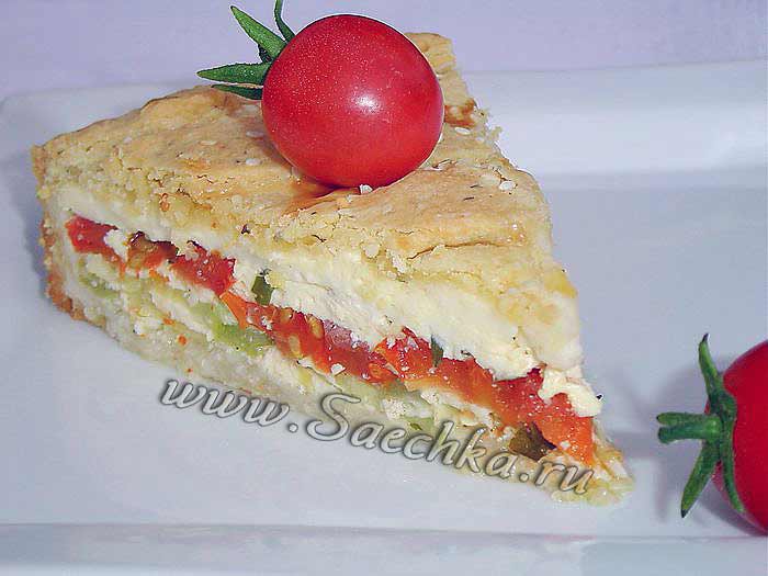 Овощной пирог приготовлен с сочной начинкой из кабачков, помидоров и сыра брынза в рассыпчатом тесте. Попробуйте этот пирог и Вы это поймете!
