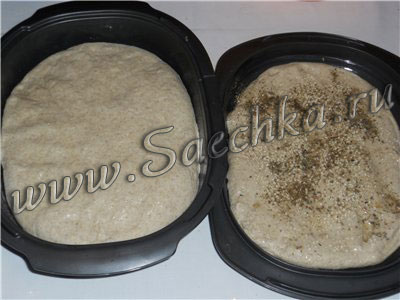 - Выкладываем в форму (или делим тесто пополам и по формам). Расстойка - 50 мин.