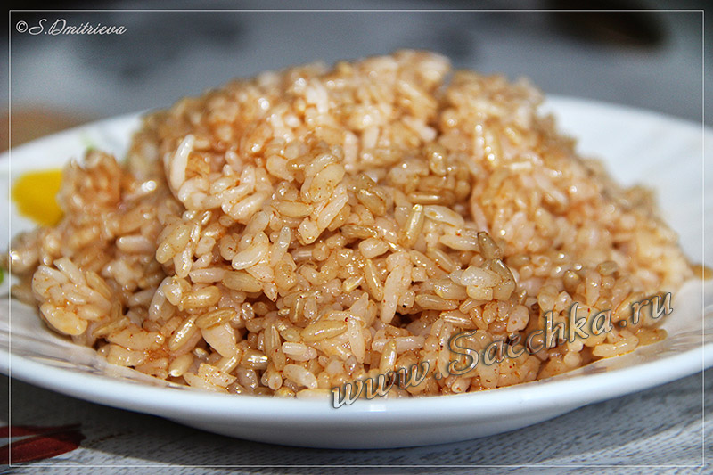 - Открываю крышку мультиварки, выливаю соус в рис, перемешиваю. Аромат стоит такой, что хочется съесть сразу и всё!