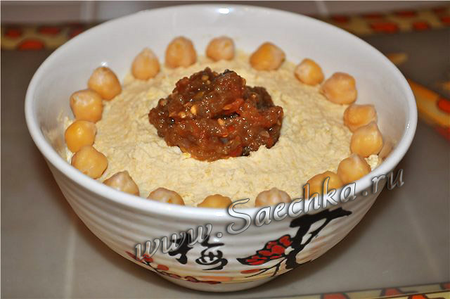 - Хумус немного охладить и подавать к столу с овощами (помидорами, огурцами, болгарским перцем и т.д.), свежим лавашем, лепешками, чипсами или питой, запеченными баклажанами или к мясным блюдам. В качестве помазки на хлеб он тоже очень вкусен.