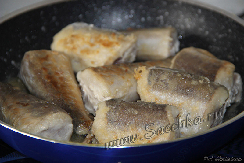 - Затем рыбу обваляла в муке и обжарила тоже на сковороде с небольшим количеством масла.
