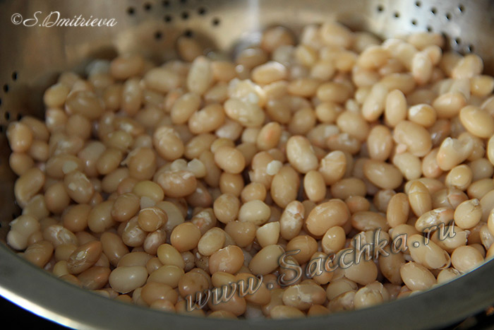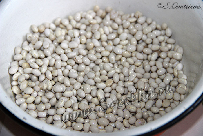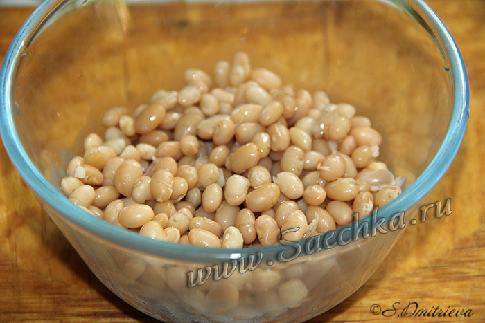 - В чашу мультиварки положила 1,5 мультистакана сухой белой промытой фасоли. Этого хватит на две-три хороших порции салата.