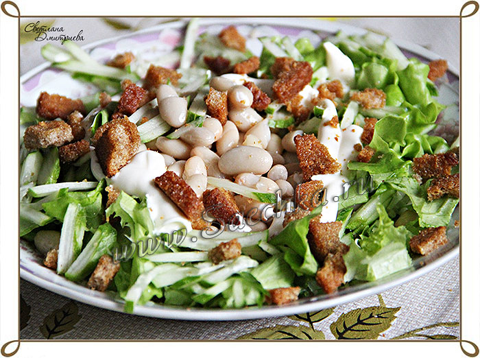 Рецепт салата с фасолью и сухариками крайне простой, но салат всегда получается вкусным.