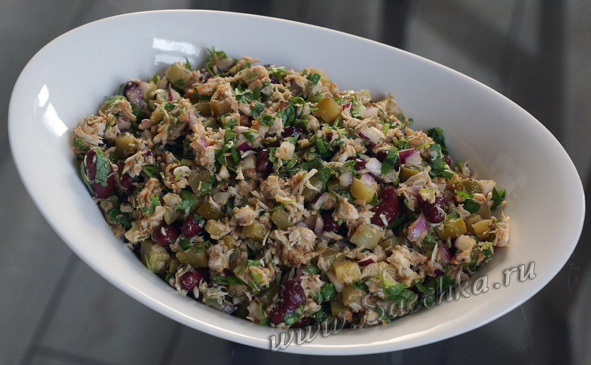 - 1 банка консервированной фасоли,