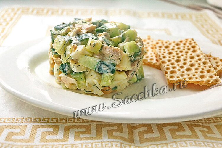 Простой лёгкий салат с курицей и огурцами идеально подходит на обед или ужин.