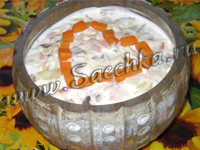 - Кушать салат «Сердечный» лучше после того, как он несколько часов постоит в холодильнике.
