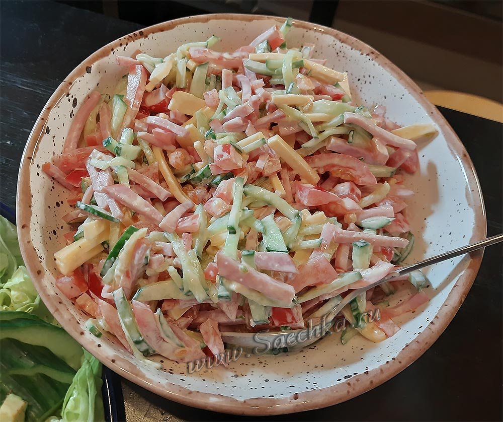 Салаты с колбасой и ветчиной
