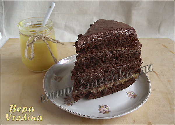 - Бисквит смазала апельсиновым курдом и ганашем, получится простой торт.