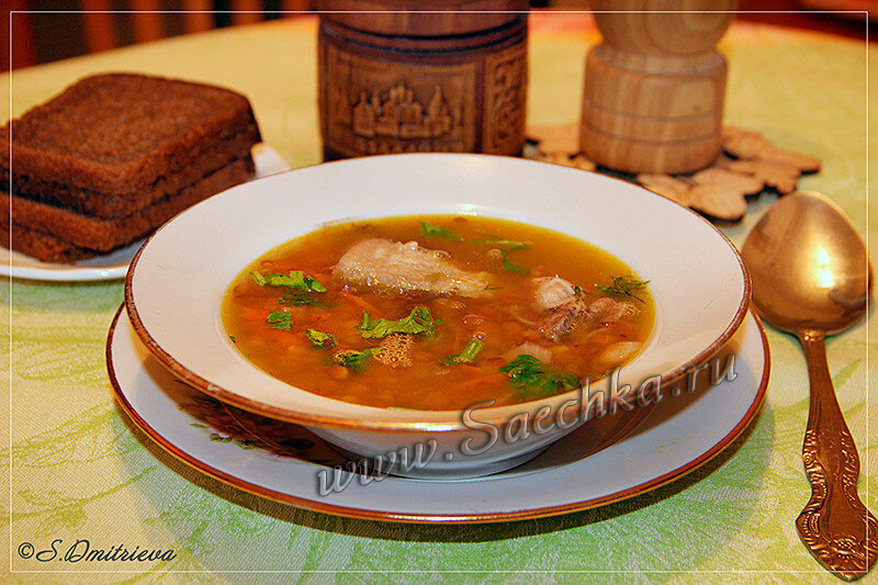 - При подаче к столу добавить в суп с чечевицей зелень.