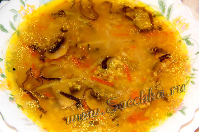 Очень вкусный и ароматный картофельный суп с грибами и пшенкой!