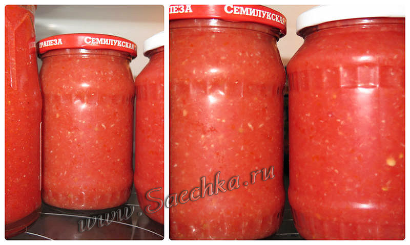 «Сырую» аджику из помидор можно готовить с разными ингредиентами: луком, яблоками, сливой или жгучим перцем. Хранить такую аджику в холодильнике.