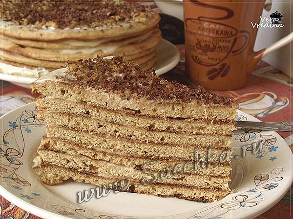 - Убрать медовый торт в холодильник на ночь, чтоб хорошо пропитался.