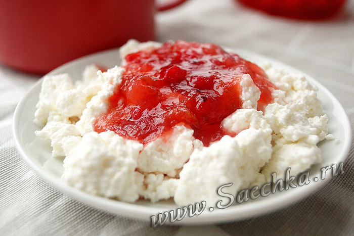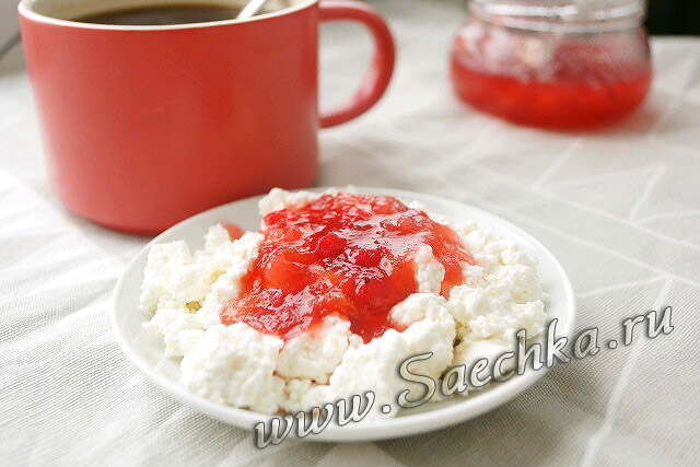 - Сделала к творогу быстренько домашний джем из замороженных ягод: смородина и клубника. Вкусно, а главное - всё свежеприготовленное!