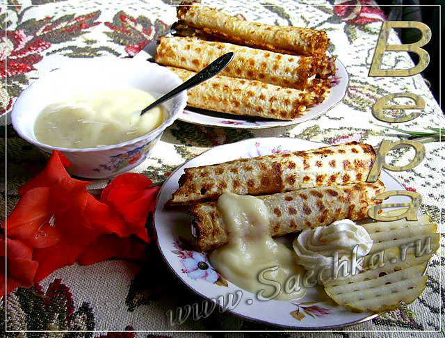 Кружевные вафли получаются тоненькие и хрустящие. Подавала с грушевым кремом.
