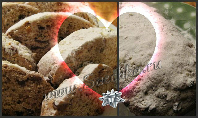 Я делала обычный рождественский штоллен и, как альтернативный вариант, - бездрожжевой творожный штоллен, который всем понравился больше на вкус, кстати.