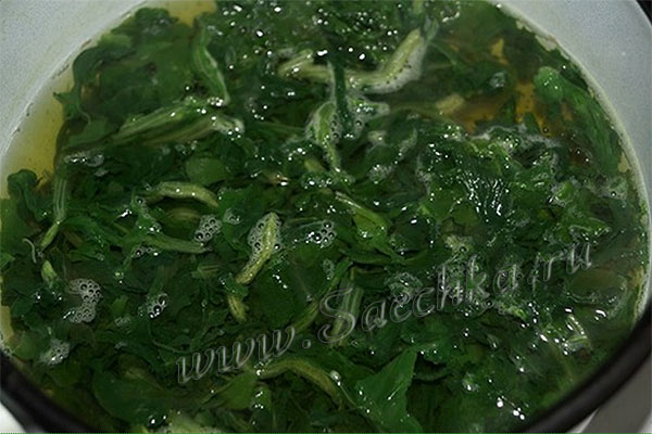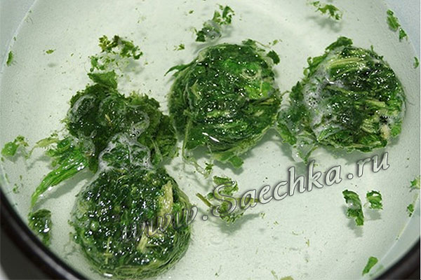 - Шпинат залить водой и бланшировать, пока все листья не обмякнут. Это примерно 5-8 минут: