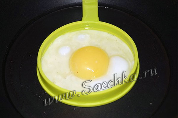 - На чуть смазанной сковороде пожарить яичницу-глазунью из одного яйца.
