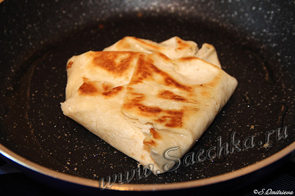 - Лаваш сбрызнула водой, выложила на горячую сковородку.
